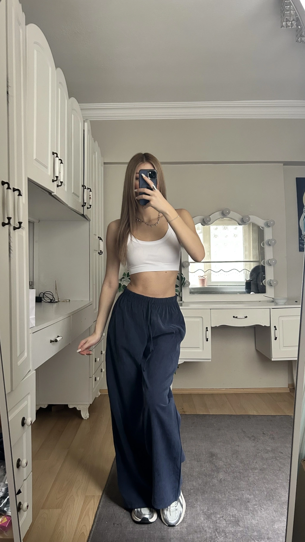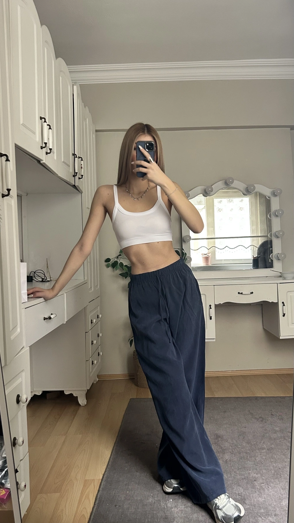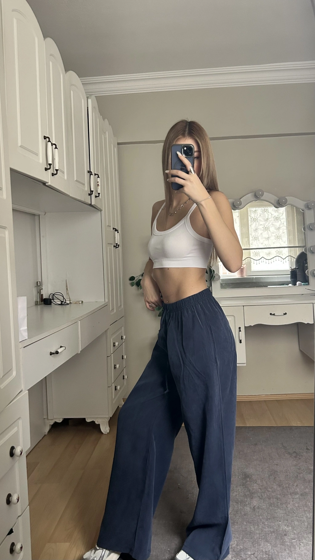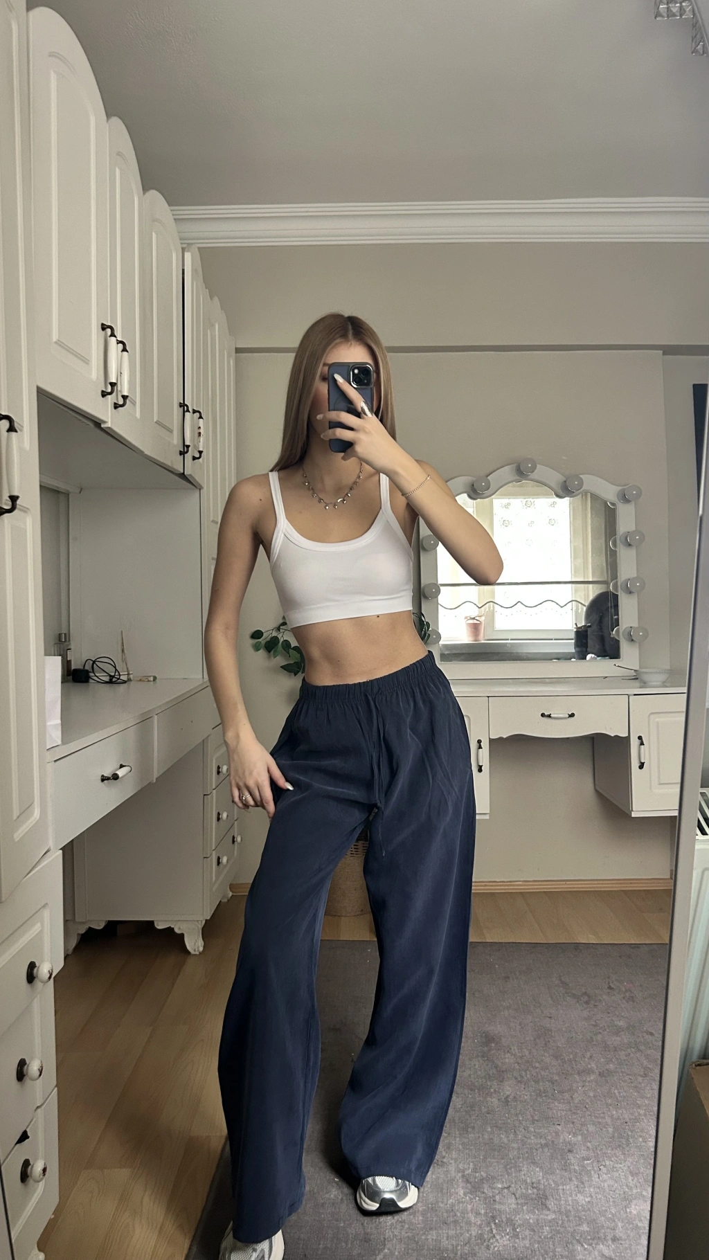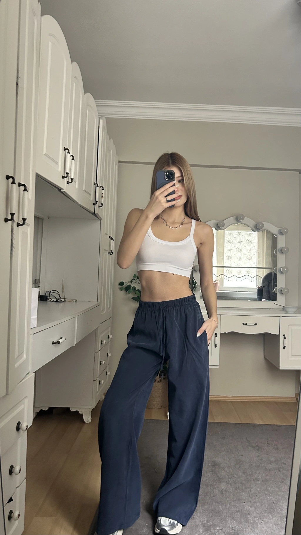 Lacivert Beli Lastikli Salaş Pantolon