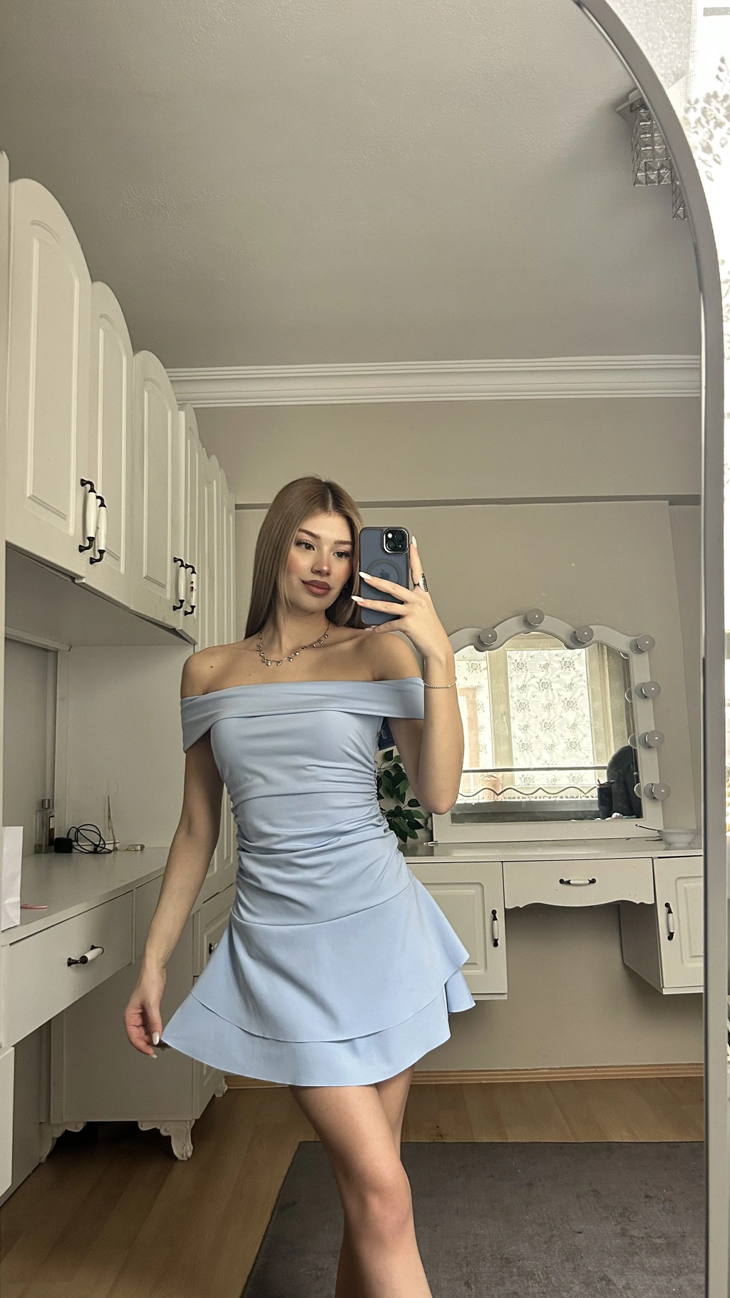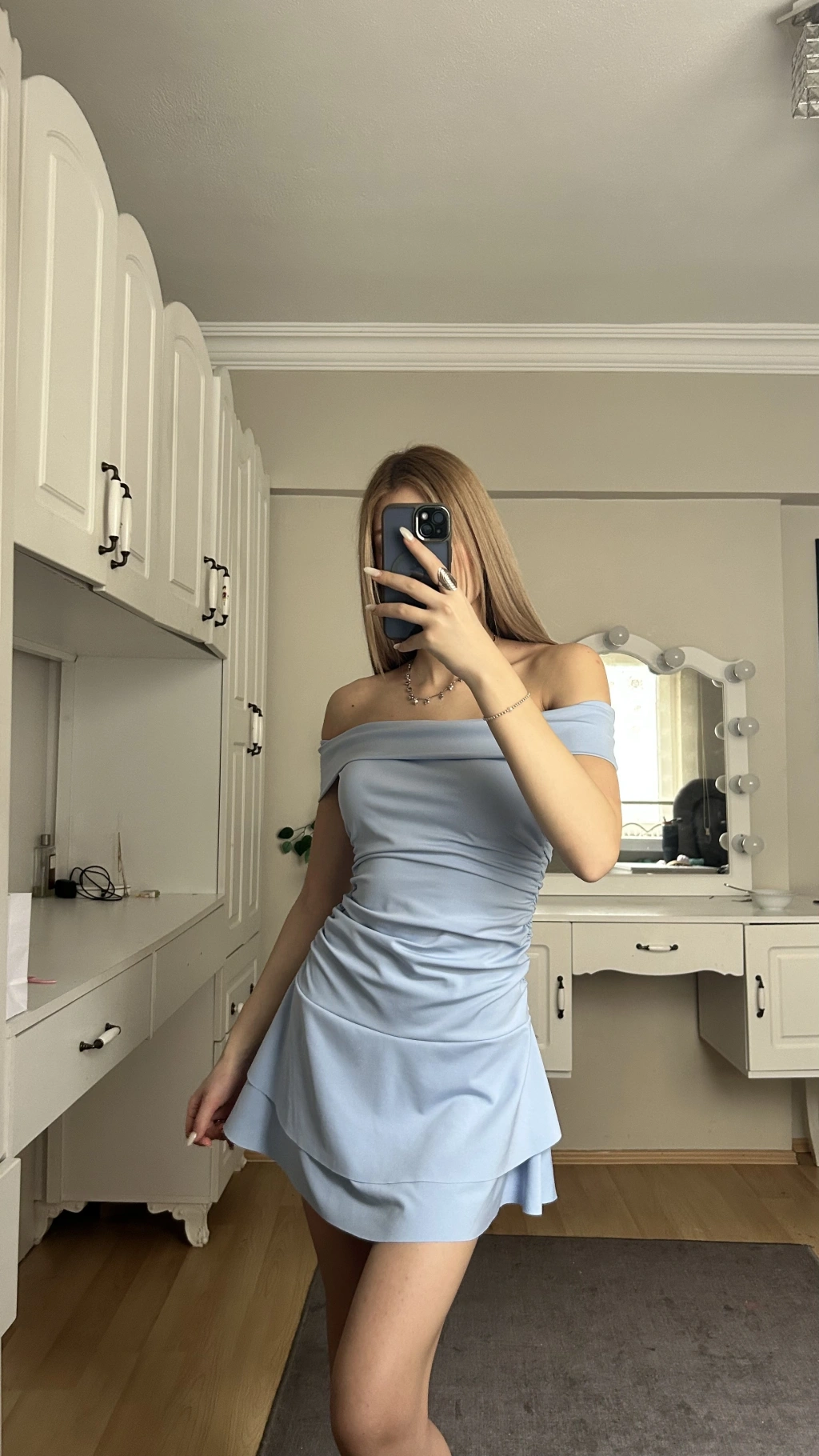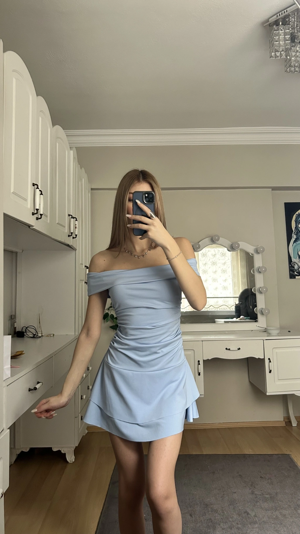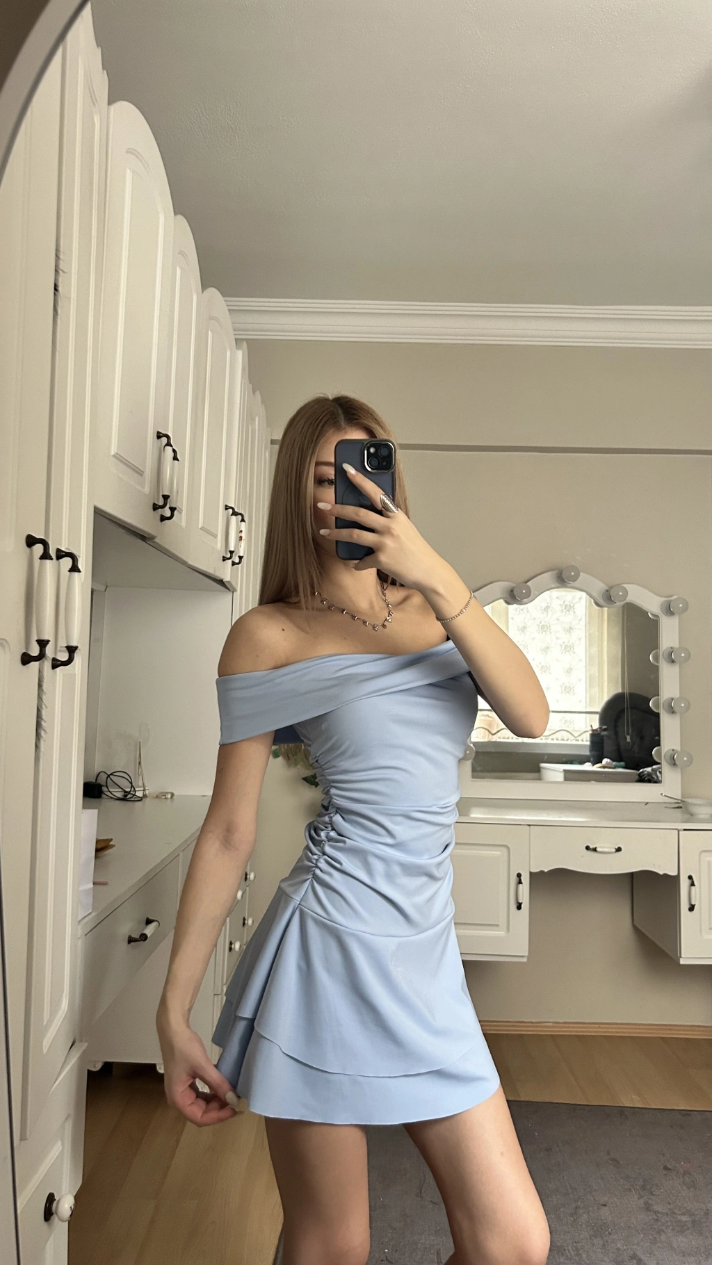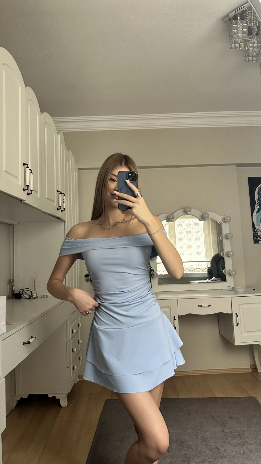 Mavi Madonna Yaka Drapeli Elbise