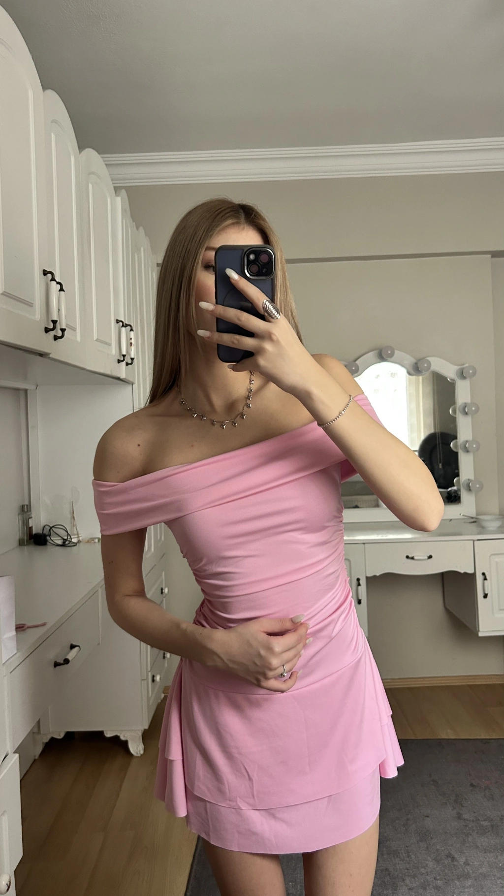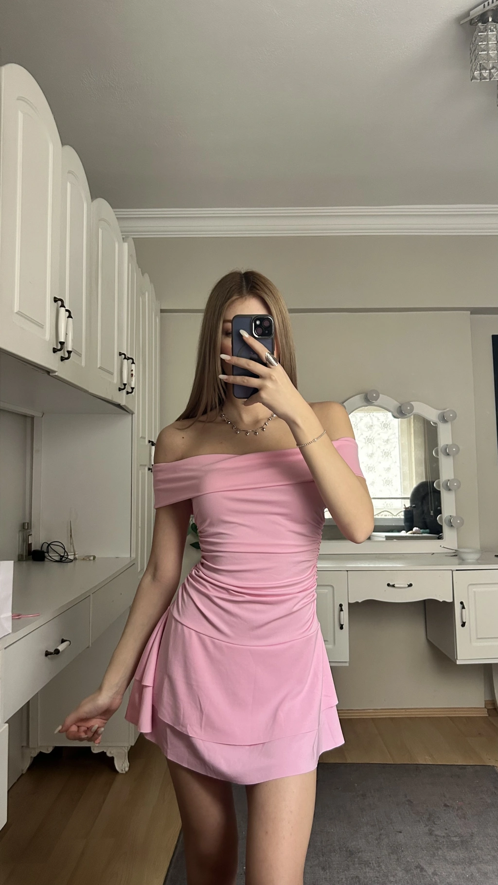 Pembe Madonna Yaka Drapeli Elbise