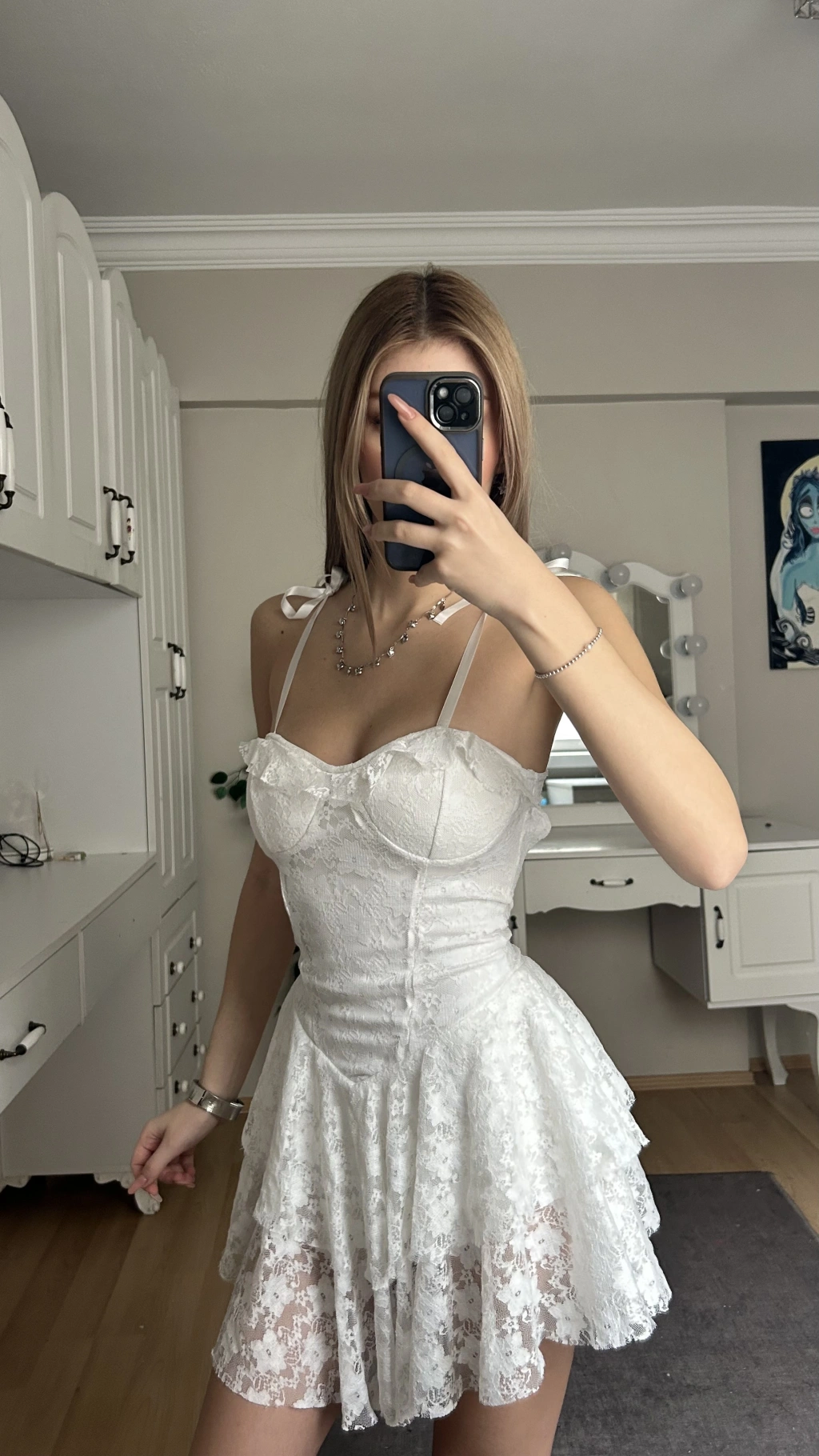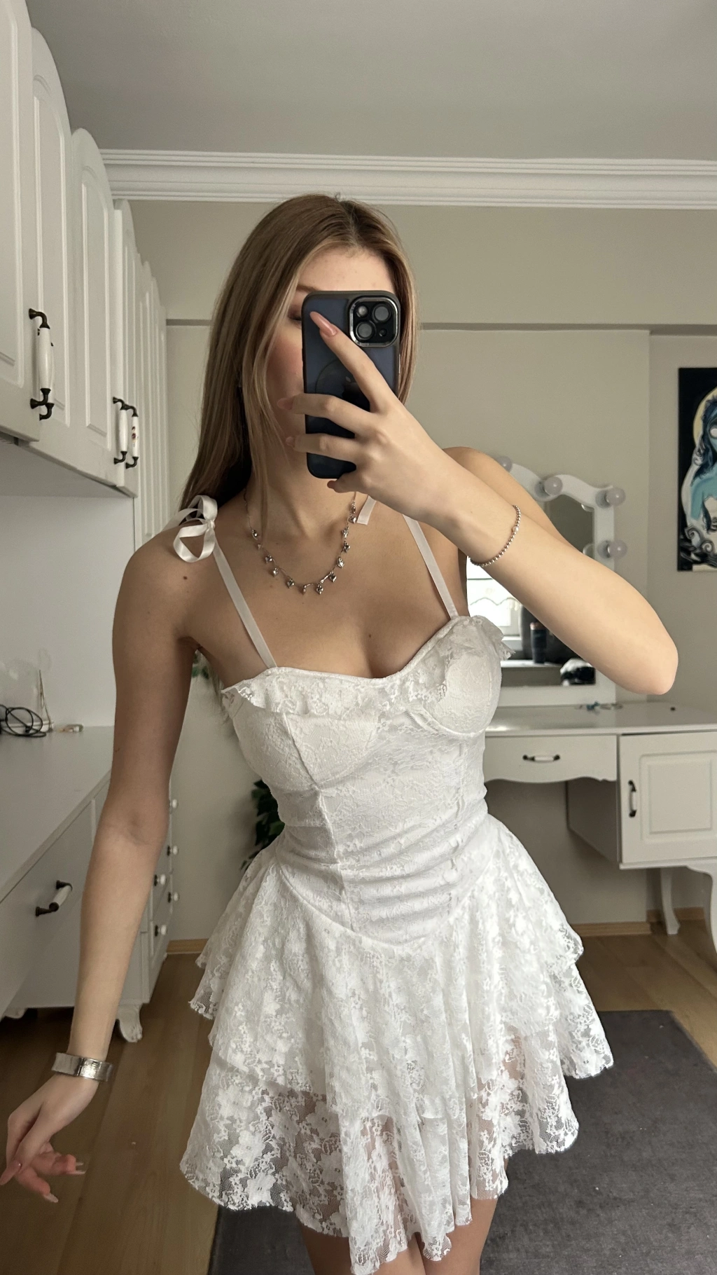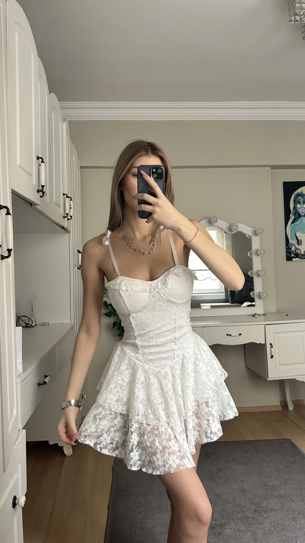 Beyaz Dantelli Büstiyer Etek Takım