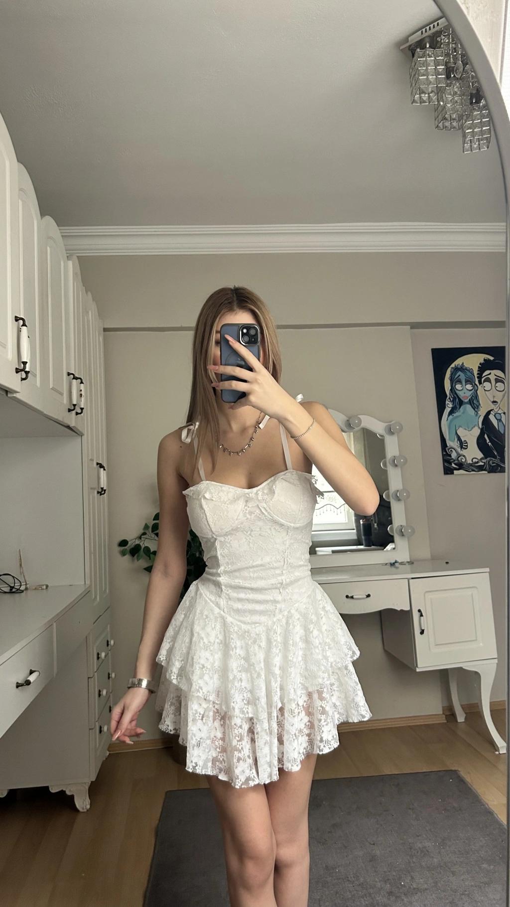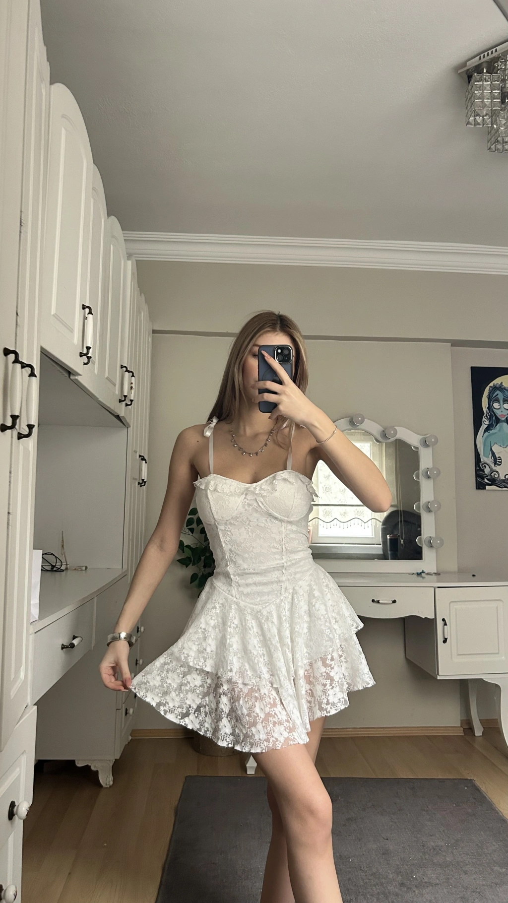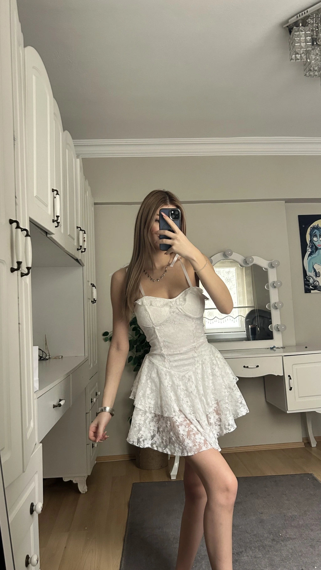 Beyaz Dantelli Büstiyer Etek Takım