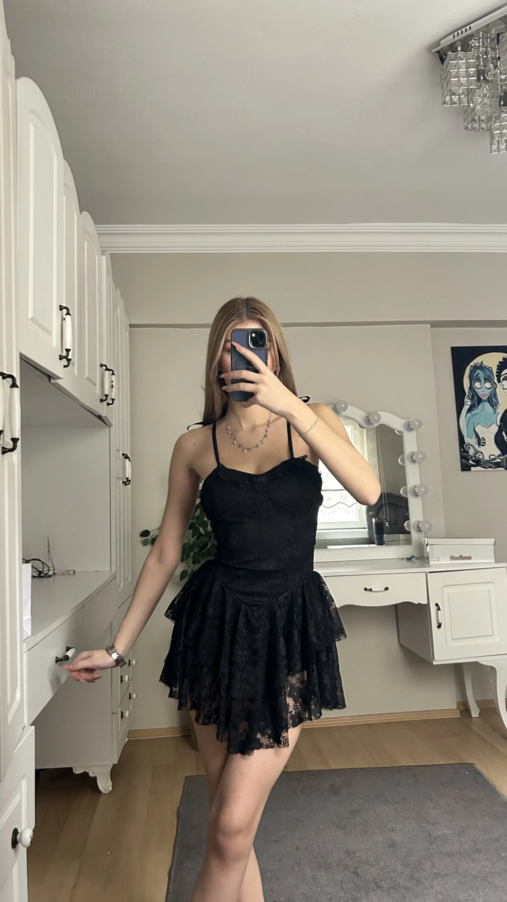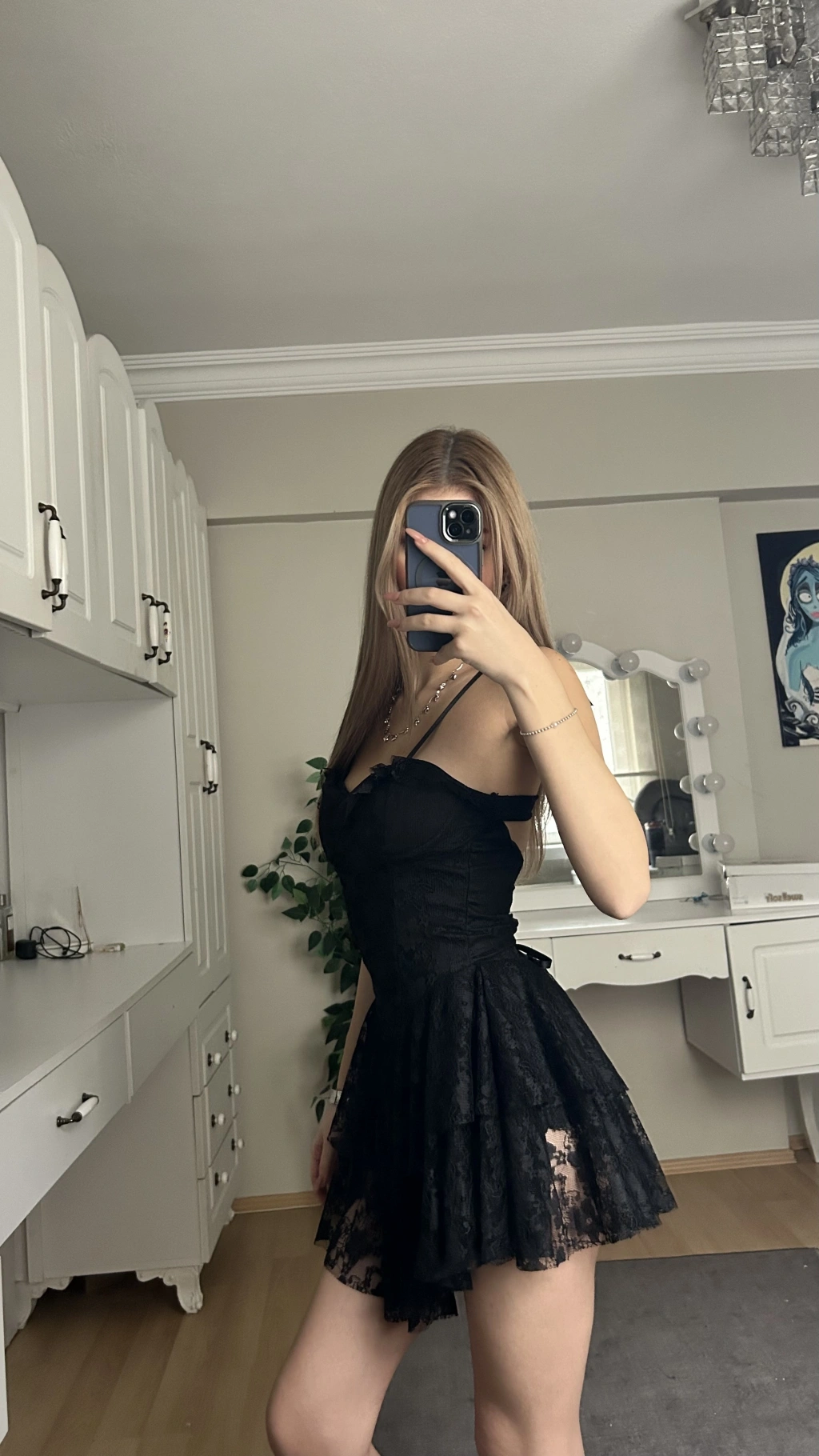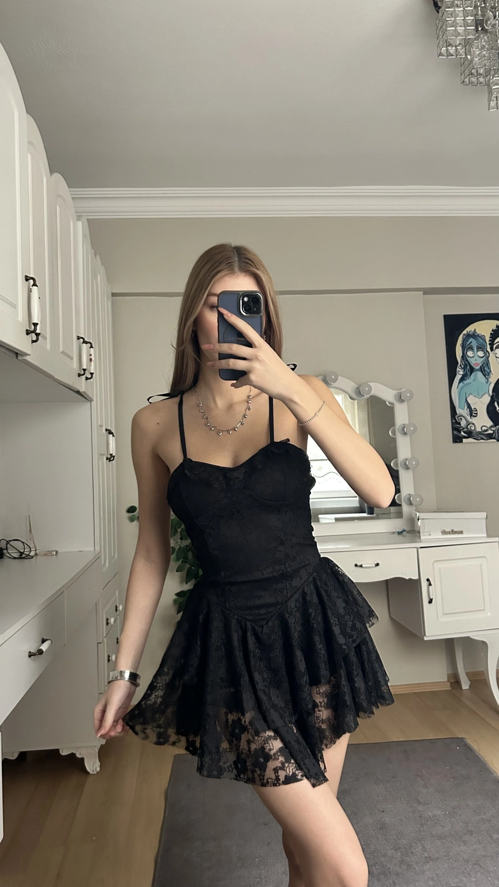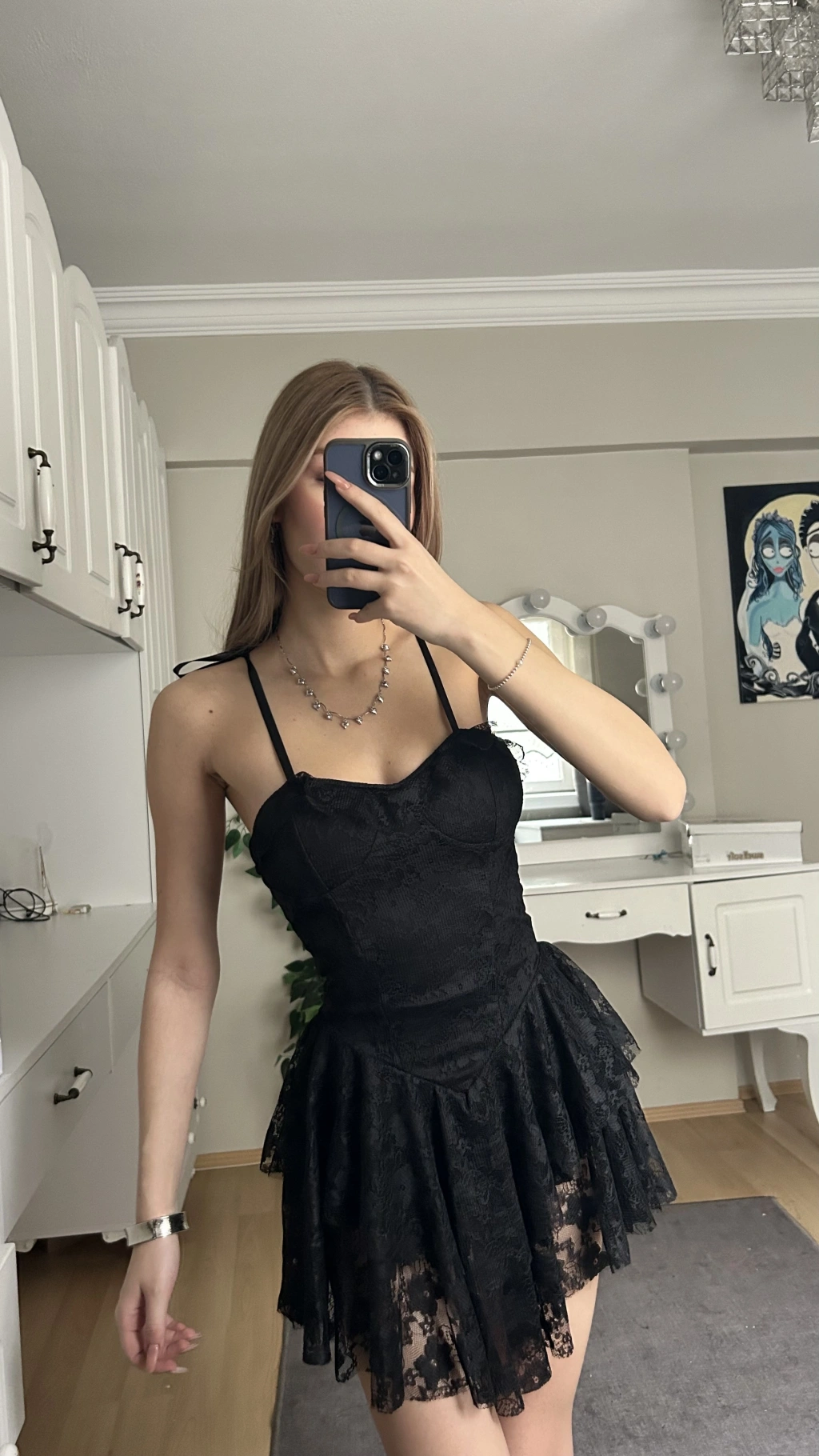Kırmızı Askılı Sırt Detay Prenses Elbise