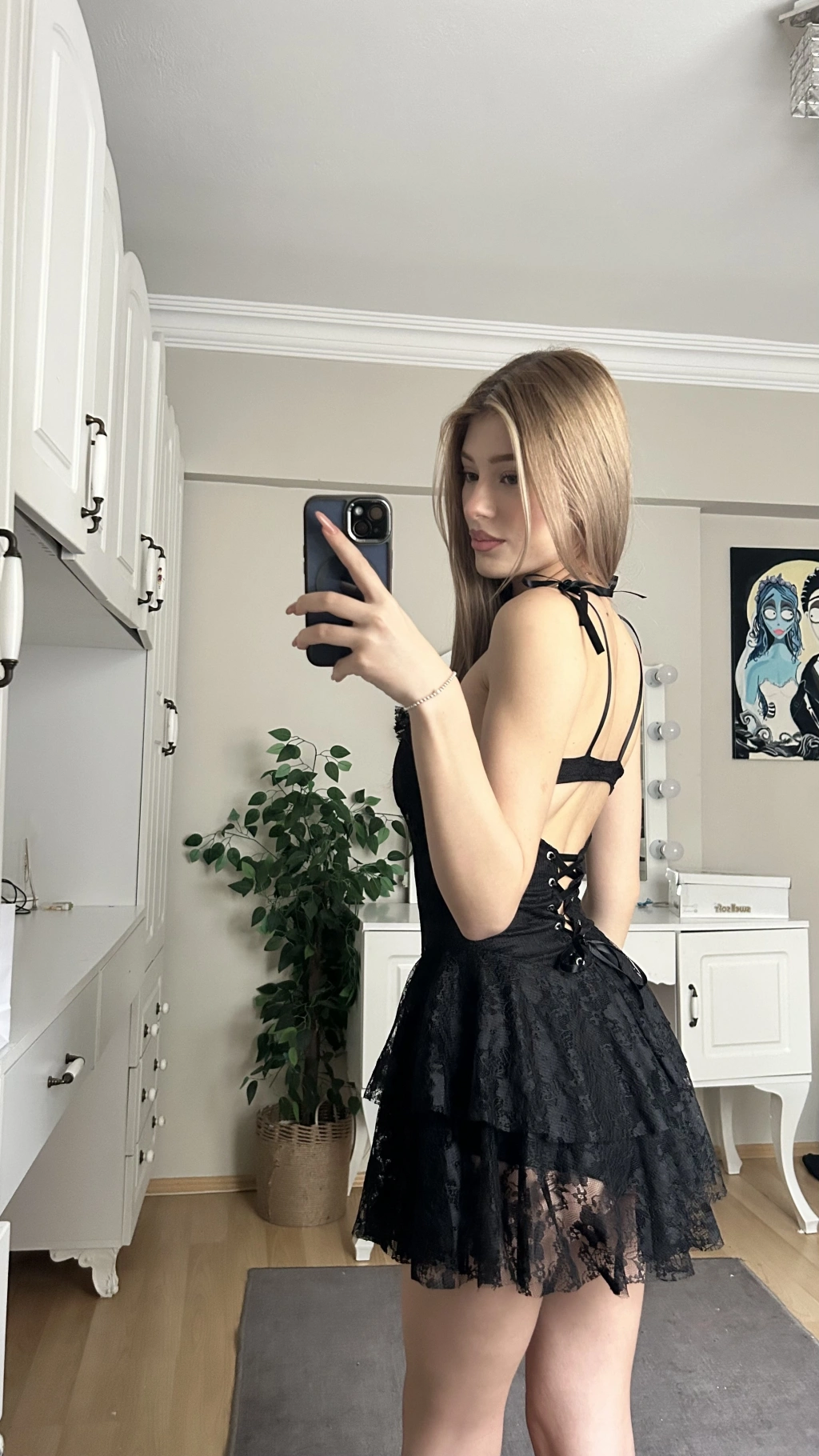 Beyaz Askılı Sırt Detay Prenses Elbise